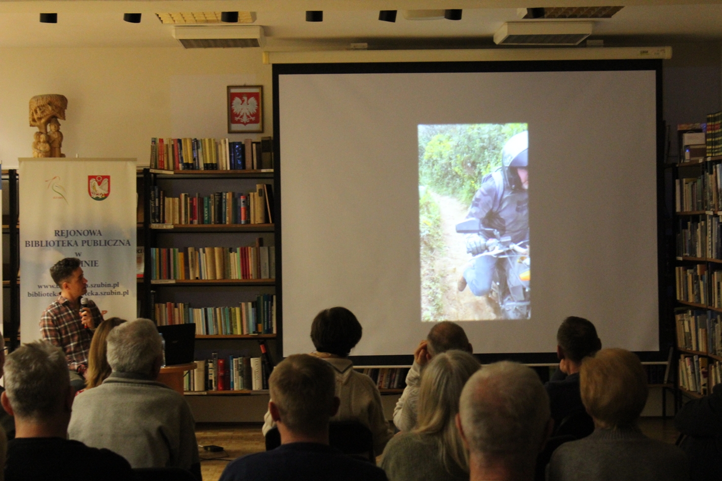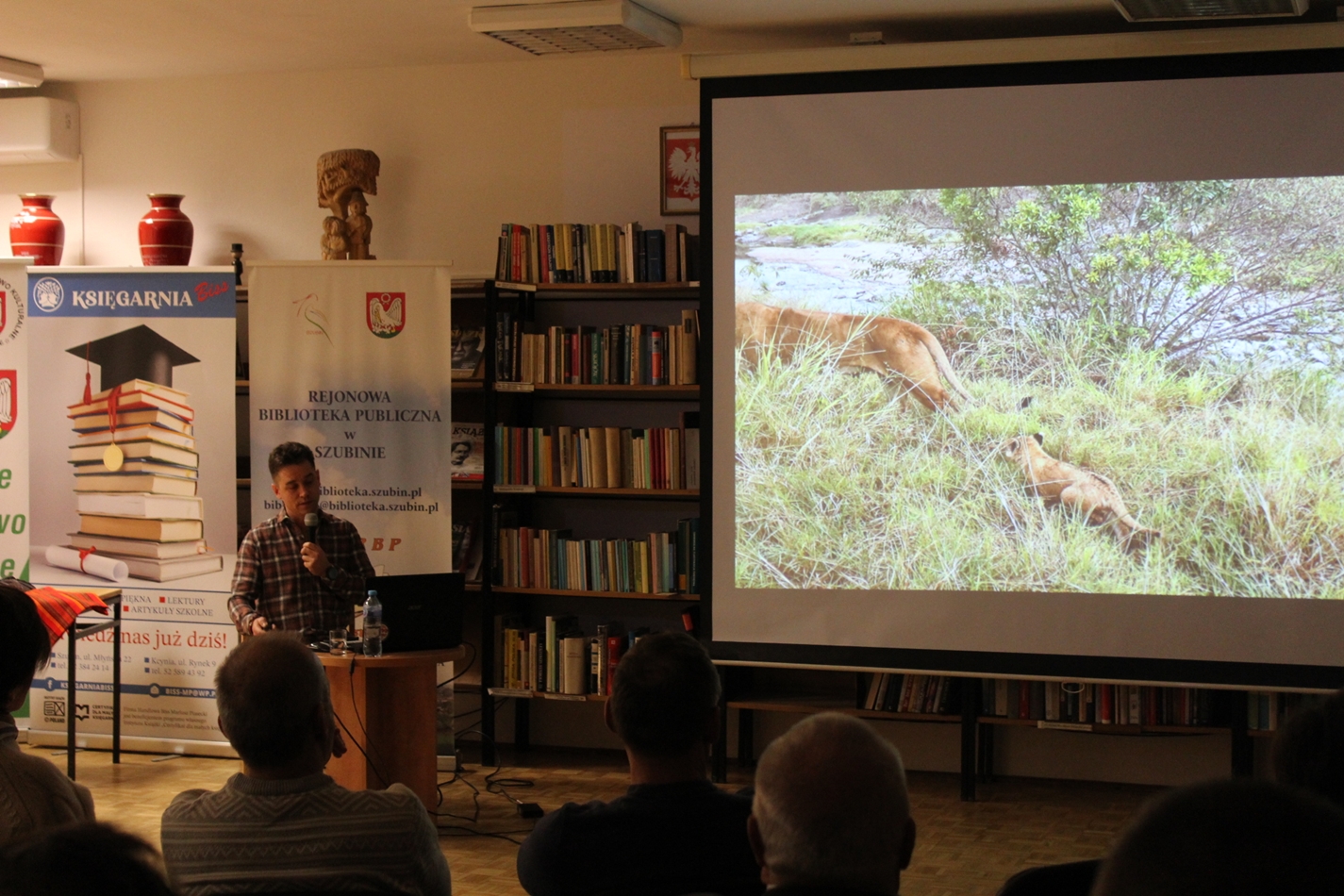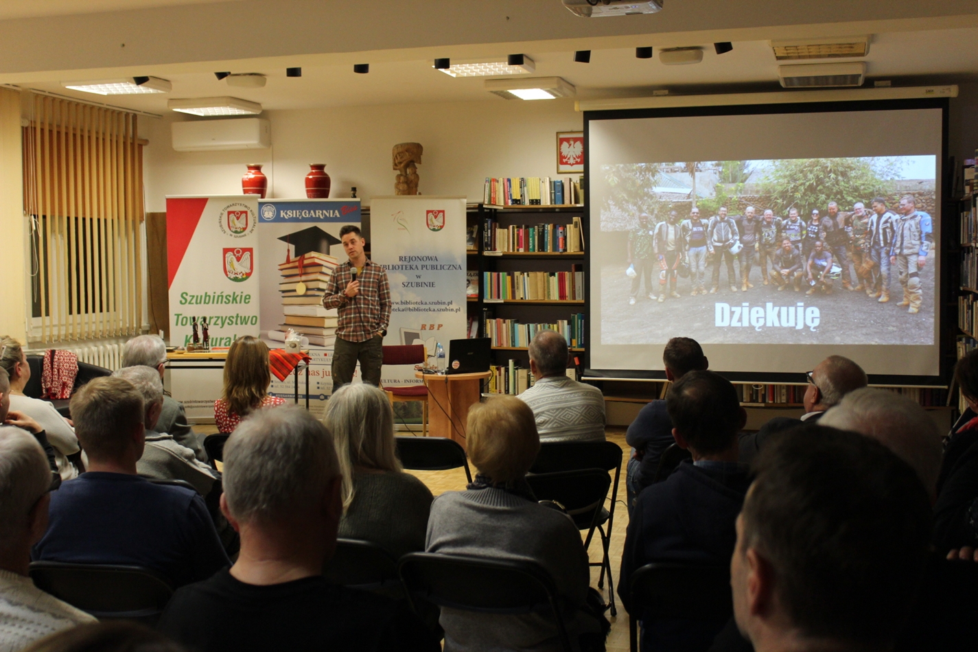 Szymon Springer znany podróżnik z Szubina tym razem zawiózł nas na motorze w serce Kenii. Wrześniowa wyprawa była czymś więcej niż śmiałym wyczynem podróżnika po Australii, Himalajach, Spitsbergenie i wielu innych egzotycznych rejonach. Szymon wszedł na wyższy poziom i od pewnego czasu organizuje wyprawy dla małych grup spragnionych prawdziwej przygody w terenie. Daleko od słynnych wczasów all inclusive. Grupa śmiałków biorąca udział w wyprawie przejechała spory obszar kraju od pustyń, sawanny po rejony uprawy herbaty, małe miasta, wsie i zupełne pustkowia. Śmiałkowie podziwiali dzikie zwierzęta na wolności, min lwy w czasie polowania, groźne hipopotamy, barwne ptaki. Był też czas na spotkania z lokalną ludnością, także ze słynnymi Masajami. Największe wrażenie na wszystkich zrobił olbrzymi park narodowy Amboseli położony u stóp góry Kilimandżaro. Spotkanie w styczniowy wieczór, było bogate w zdjęcia i krótkie filmiki. Nie musimy chyba dodawać, że czytelnia szubińskiej biblioteki była pełna po brzegi a pytania do autora spotkania nie miały końca. Dziękujemy Szymonie!