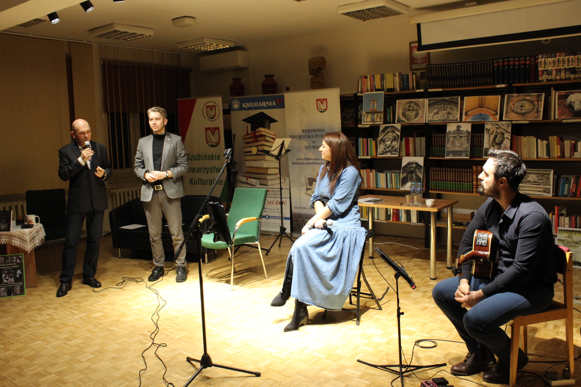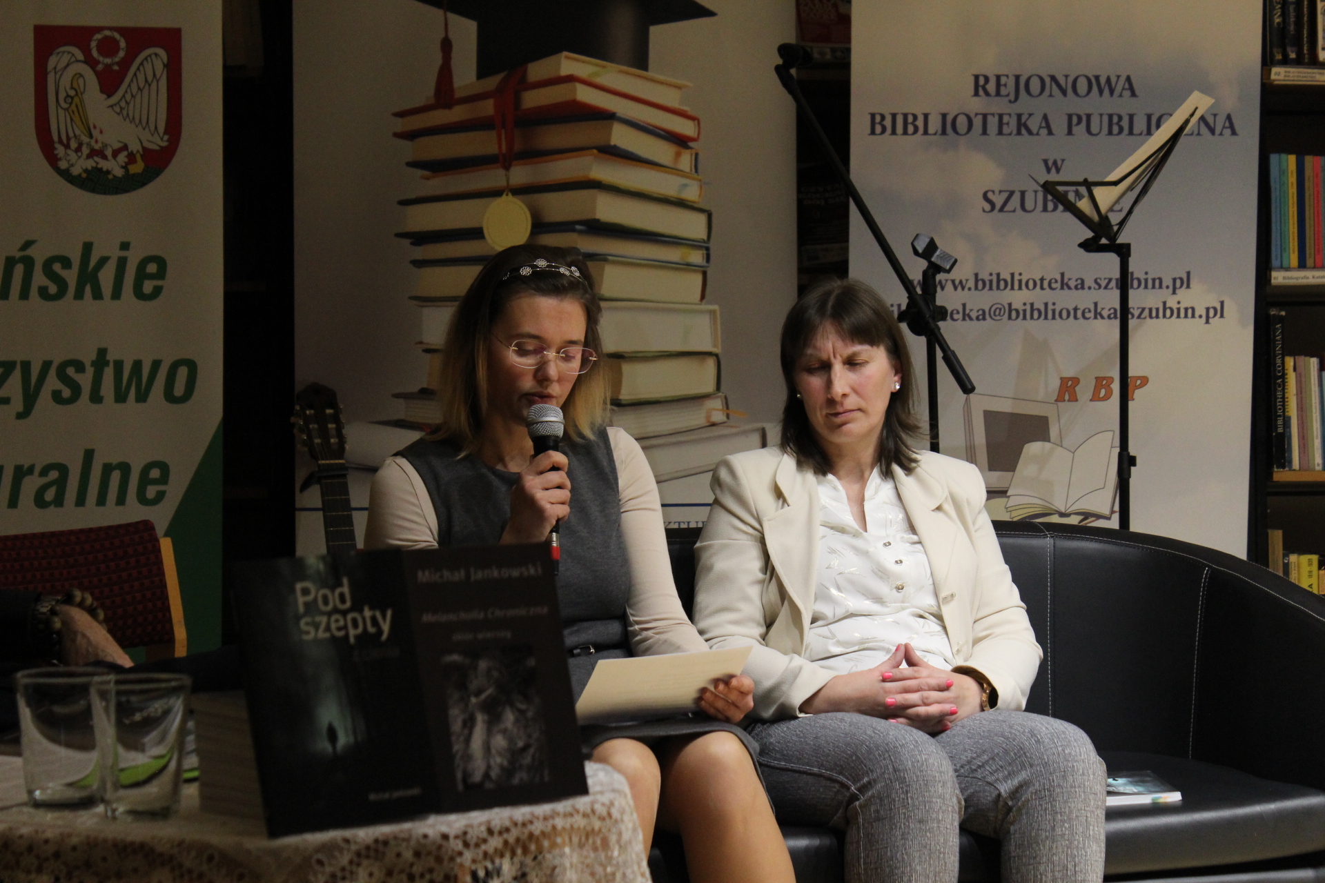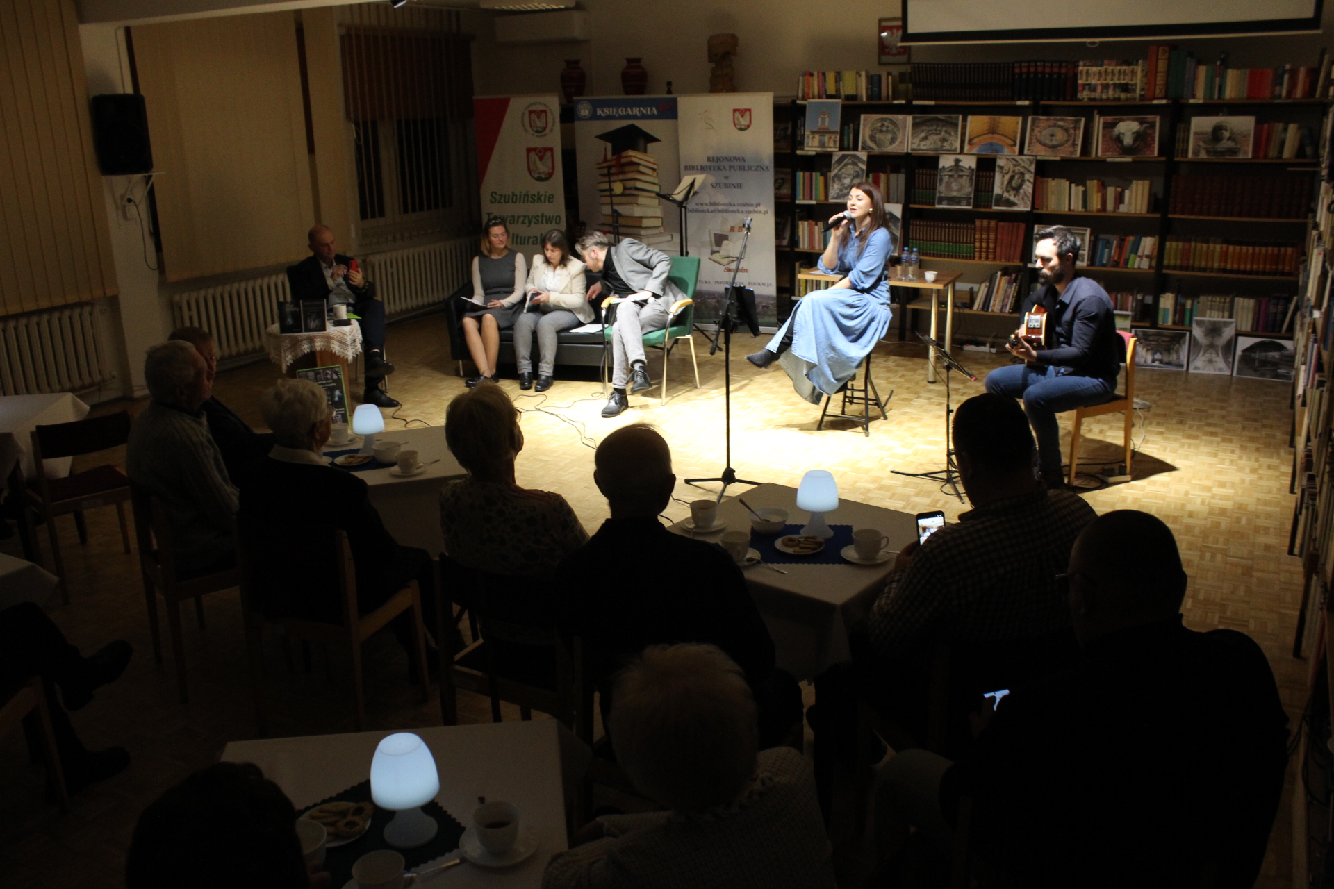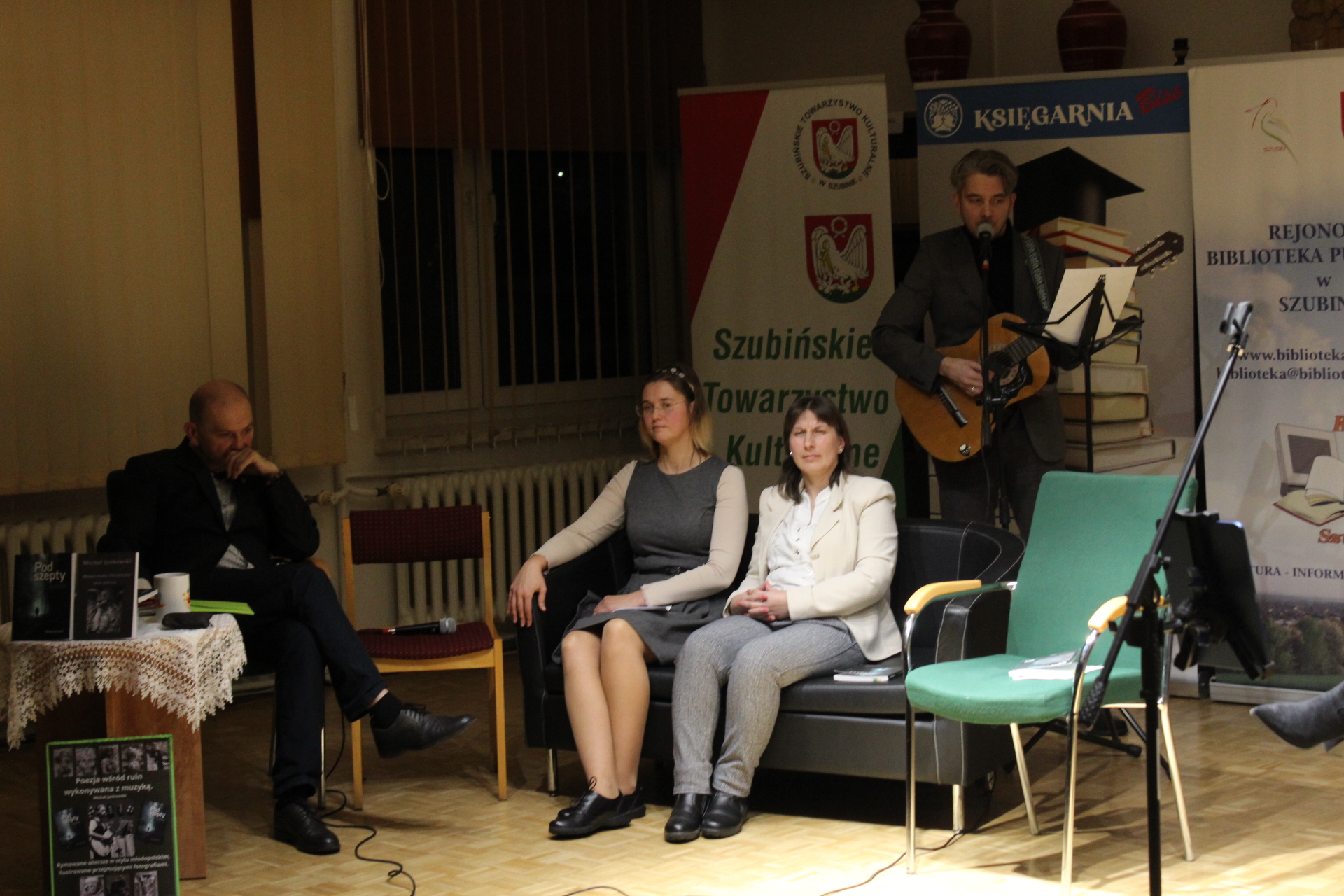 W listopadowy wieczór w szubińskiej bibliotece publicznej splotły się w miłosnym uścisku muzy poezji Kaliope i Euterpe oraz śpiewu, muzyki i przedstawienia scenicznego Melpomeny. W nastrojowym wnętrzu wybrzmiały wiersze poety, dokumentalisty i księgarza Michała Jankowskiego oraz piosenki w wykonaniu Joanny Kalka przy muzyce gitarowej Eryka Redmerskiego. Słuchaliśmy jak urzeczeni lirycznych strof pragnąc by ten wieczór nigdy się nie skończył. W recytacji wierszy wsparły poetę nasze koleżanki także poetki: Małgorzata Szweda-Czerwińska i Małgorzata Olszewska. Widownia dopisała,a bez niej nie ma przecież przedstawienia. Jeszcze raz okazało się, że potrzebujemy kontaktu z poezją, tą mówioną i tą śpiewaną. Kameralny spektakl jaki stworzyli Michał, Joanna, Eryk, Małgorzata i Katarzyna pamiętać będziemy długo. Dziękujemy!