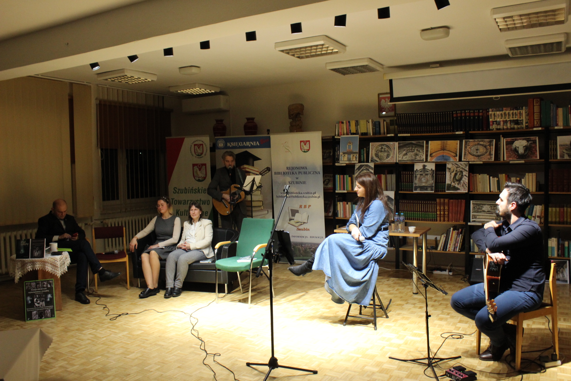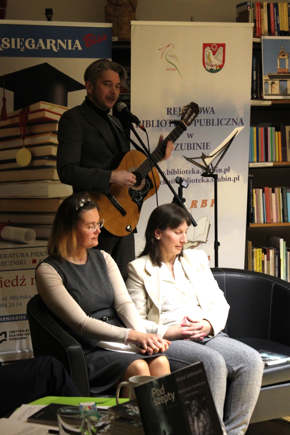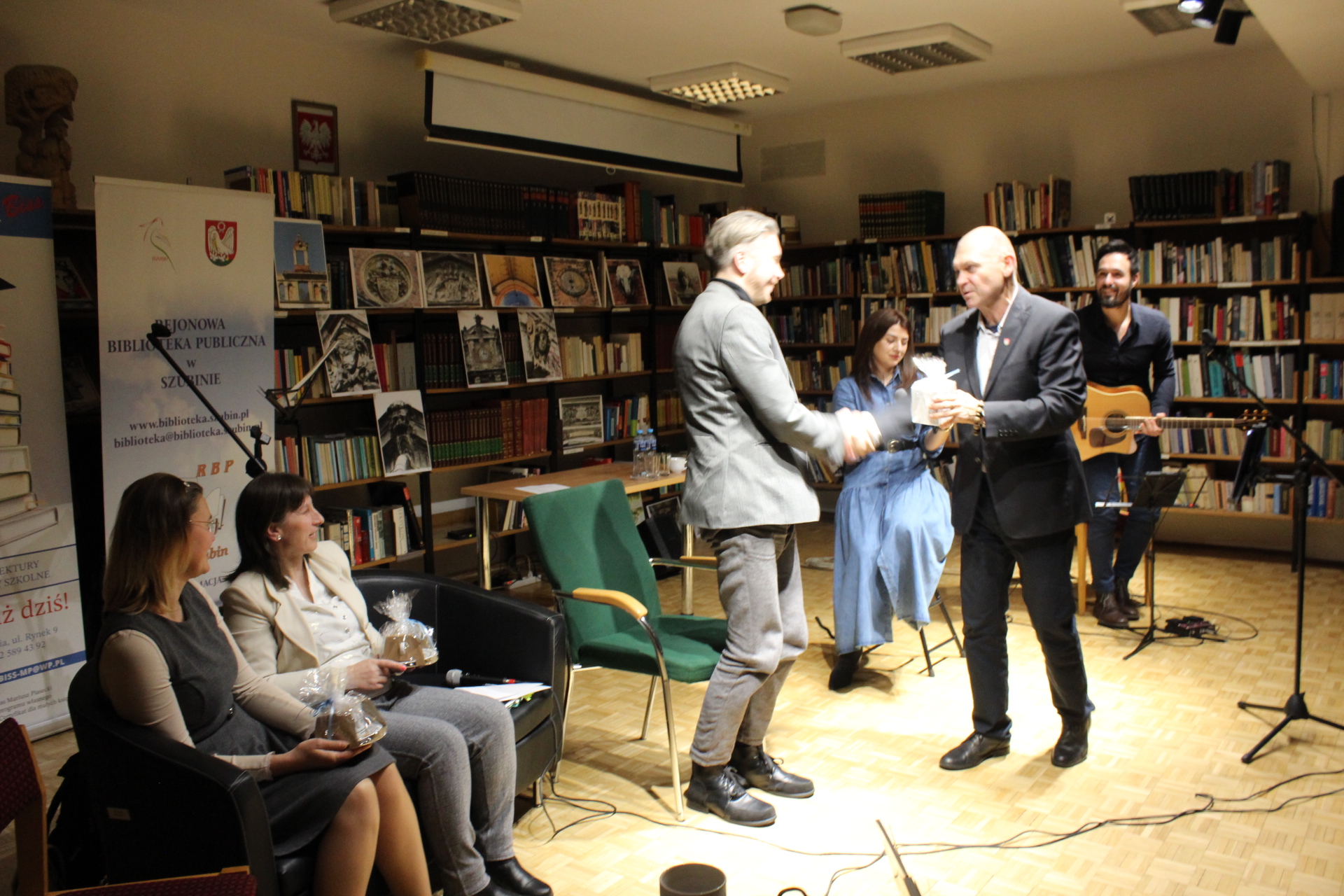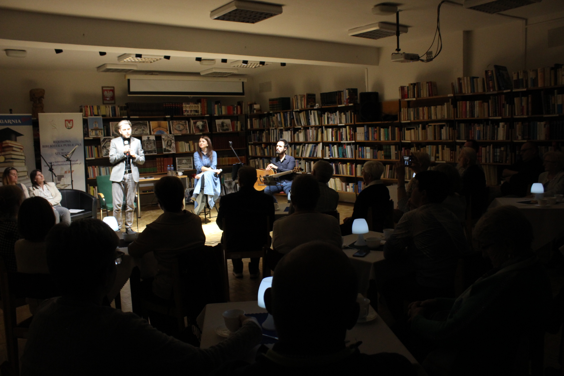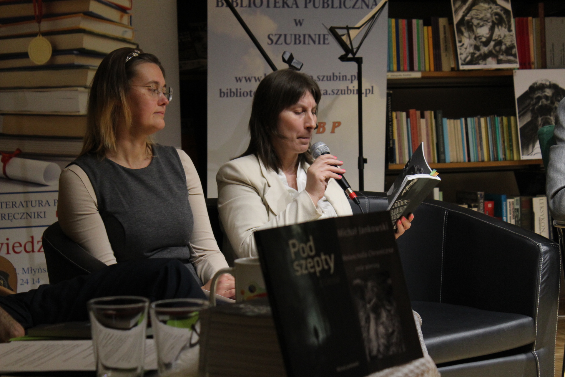 W listopadowy wieczór w szubińskiej bibliotece publicznej splotły się w miłosnym uścisku muzy poezji Kaliope i Euterpe oraz śpiewu, muzyki i przedstawienia scenicznego Melpomeny. W nastrojowym wnętrzu wybrzmiały wiersze poety, dokumentalisty i księgarza Michała Jankowskiego oraz piosenki w wykonaniu Joanny Kalka przy muzyce gitarowej Eryka Redmerskiego. Słuchaliśmy jak urzeczeni lirycznych strof pragnąc by ten wieczór nigdy się nie skończył. W recytacji wierszy wsparły poetę nasze koleżanki także poetki: Małgorzata Szweda-Czerwińska i Małgorzata Olszewska. Widownia dopisała,a bez niej nie ma przecież przedstawienia. Jeszcze raz okazało się, że potrzebujemy kontaktu z poezją, tą mówioną i tą śpiewaną. Kameralny spektakl jaki stworzyli Michał, Joanna, Eryk, Małgorzata i Katarzyna pamiętać będziemy długo. Dziękujemy!