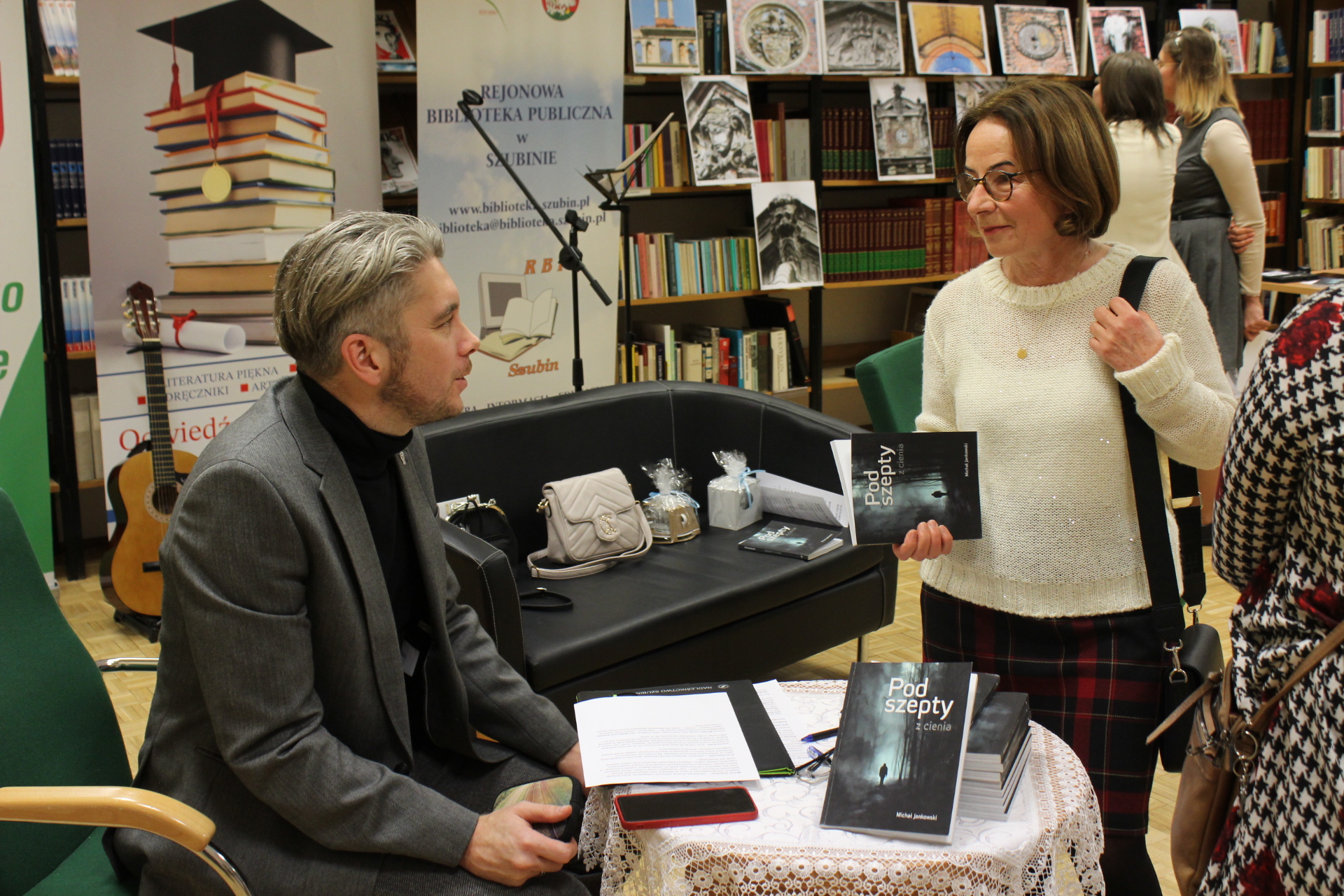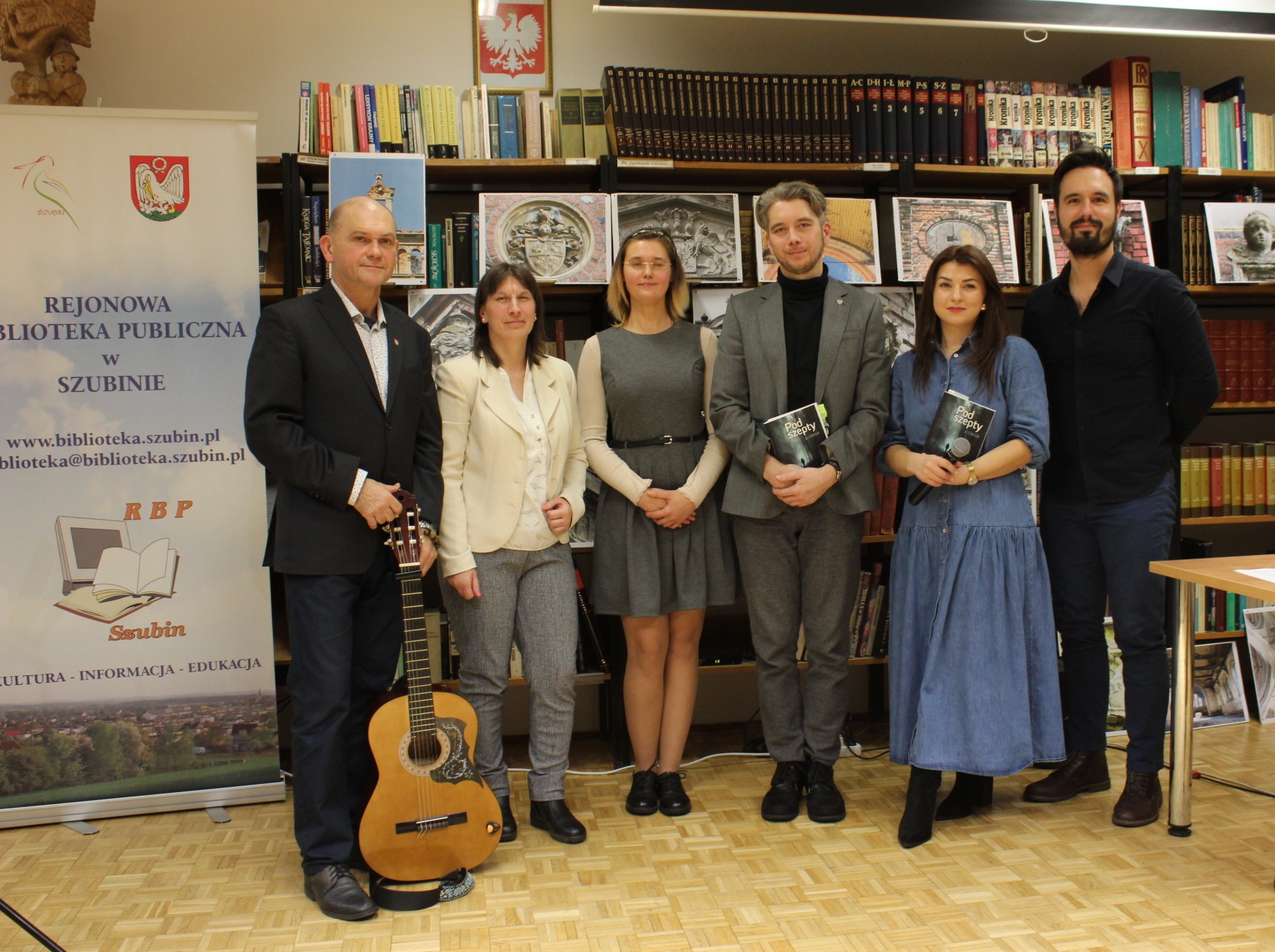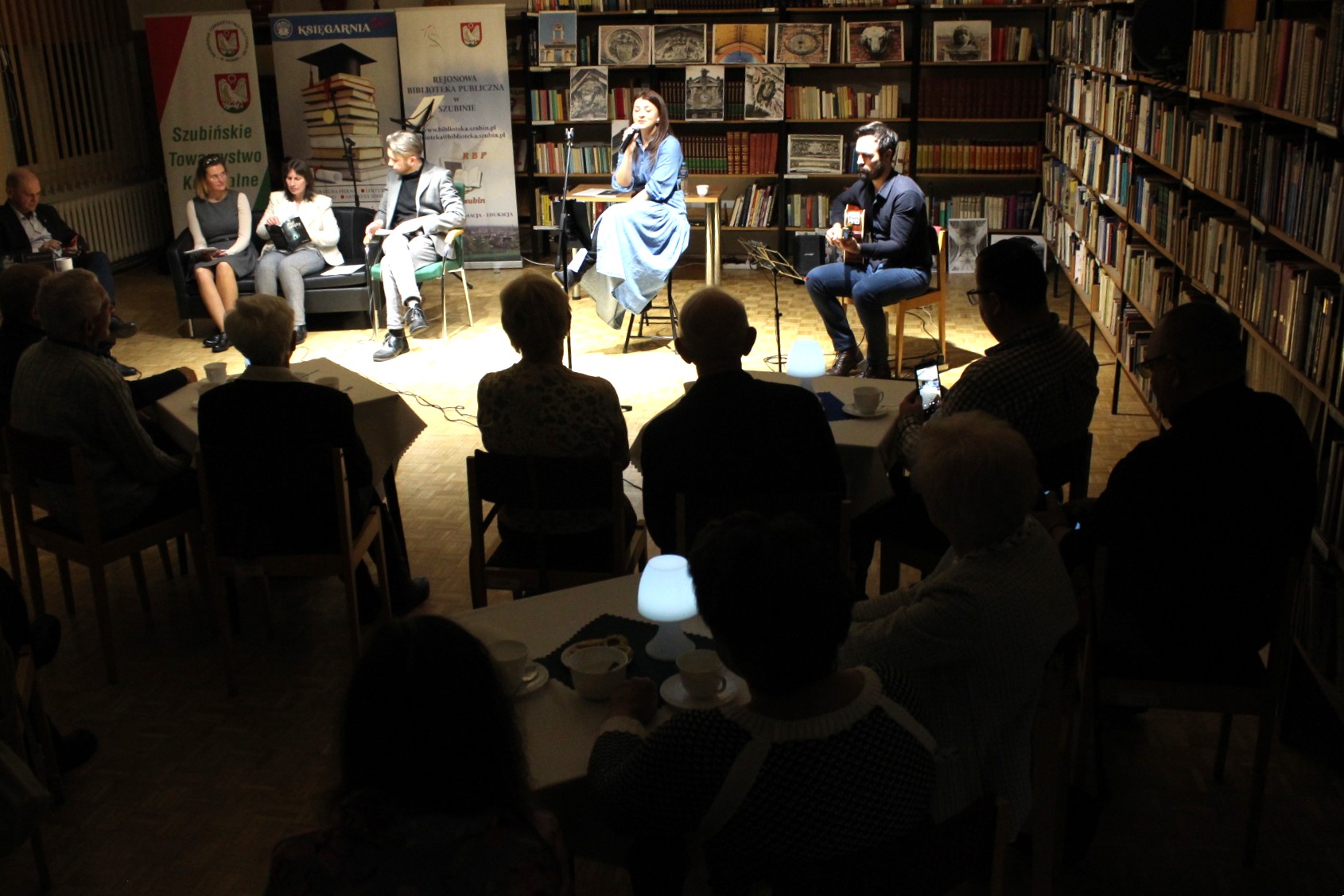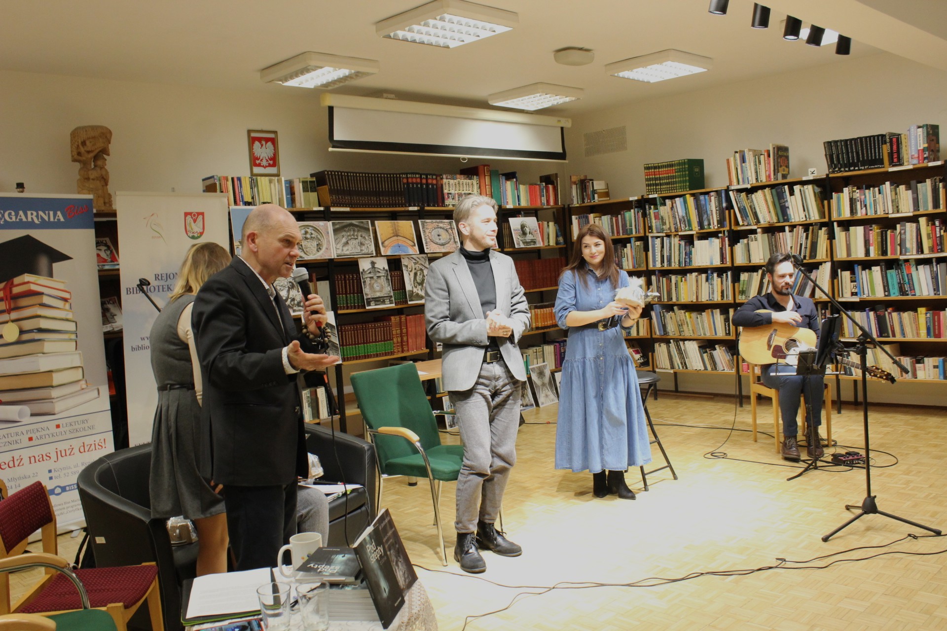 W listopadowy wieczór w szubińskiej bibliotece publicznej splotły się w miłosnym uścisku muzy poezji Kaliope i Euterpe oraz śpiewu, muzyki i przedstawienia scenicznego Melpomeny. W nastrojowym wnętrzu wybrzmiały wiersze poety, dokumentalisty i księgarza Michała Jankowskiego oraz piosenki w wykonaniu Joanny Kalka przy muzyce gitarowej Eryka Redmerskiego. Słuchaliśmy jak urzeczeni lirycznych strof pragnąc by ten wieczór nigdy się nie skończył. W recytacji wierszy wsparły poetę nasze koleżanki także poetki: Małgorzata Szweda-Czerwińska i Małgorzata Olszewska. Widownia dopisała,a bez niej nie ma przecież przedstawienia. Jeszcze raz okazało się, że potrzebujemy kontaktu z poezją, tą mówioną i tą śpiewaną. Kameralny spektakl jaki stworzyli Michał, Joanna, Eryk, Małgorzata i Katarzyna pamiętać będziemy długo. Dziękujemy!