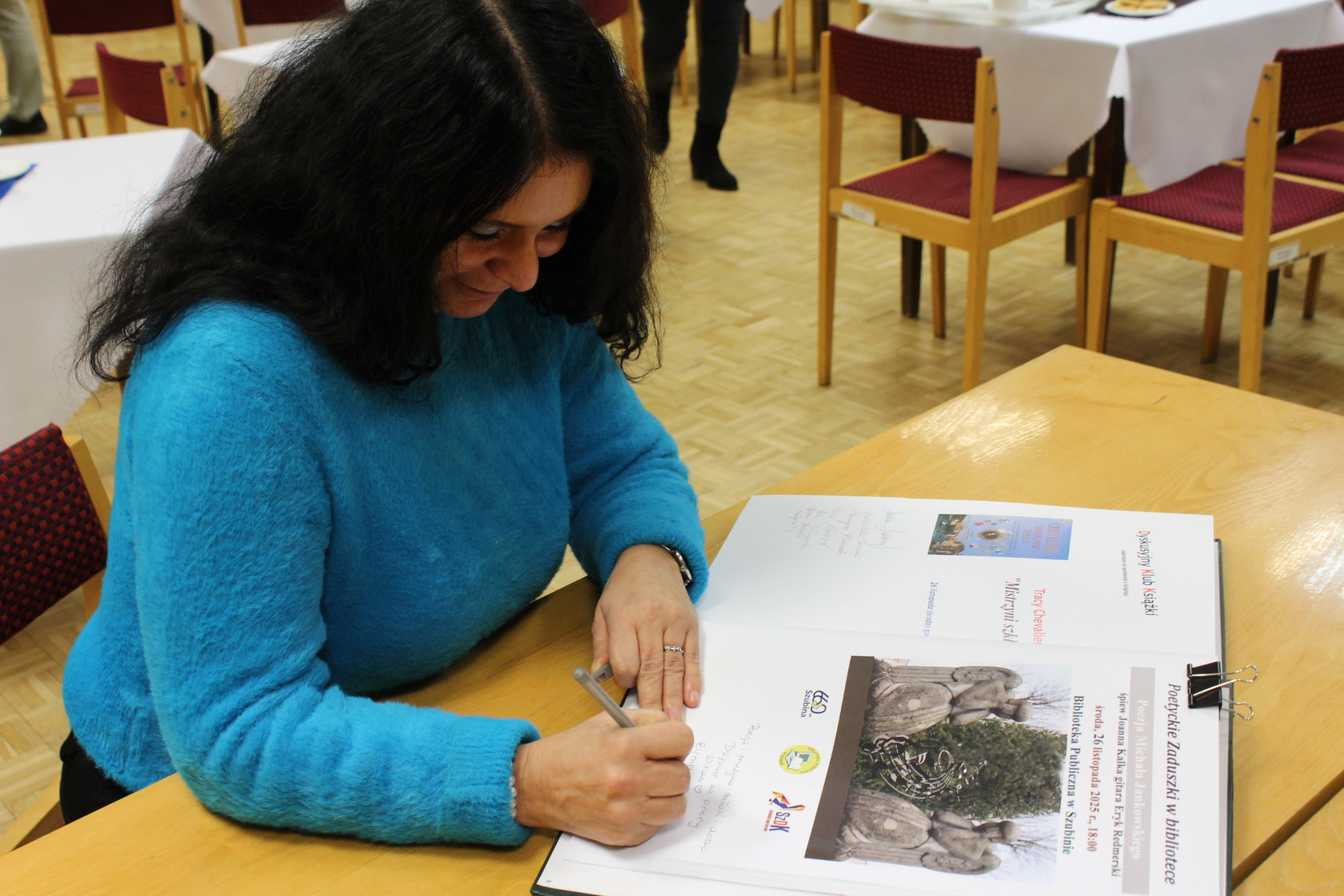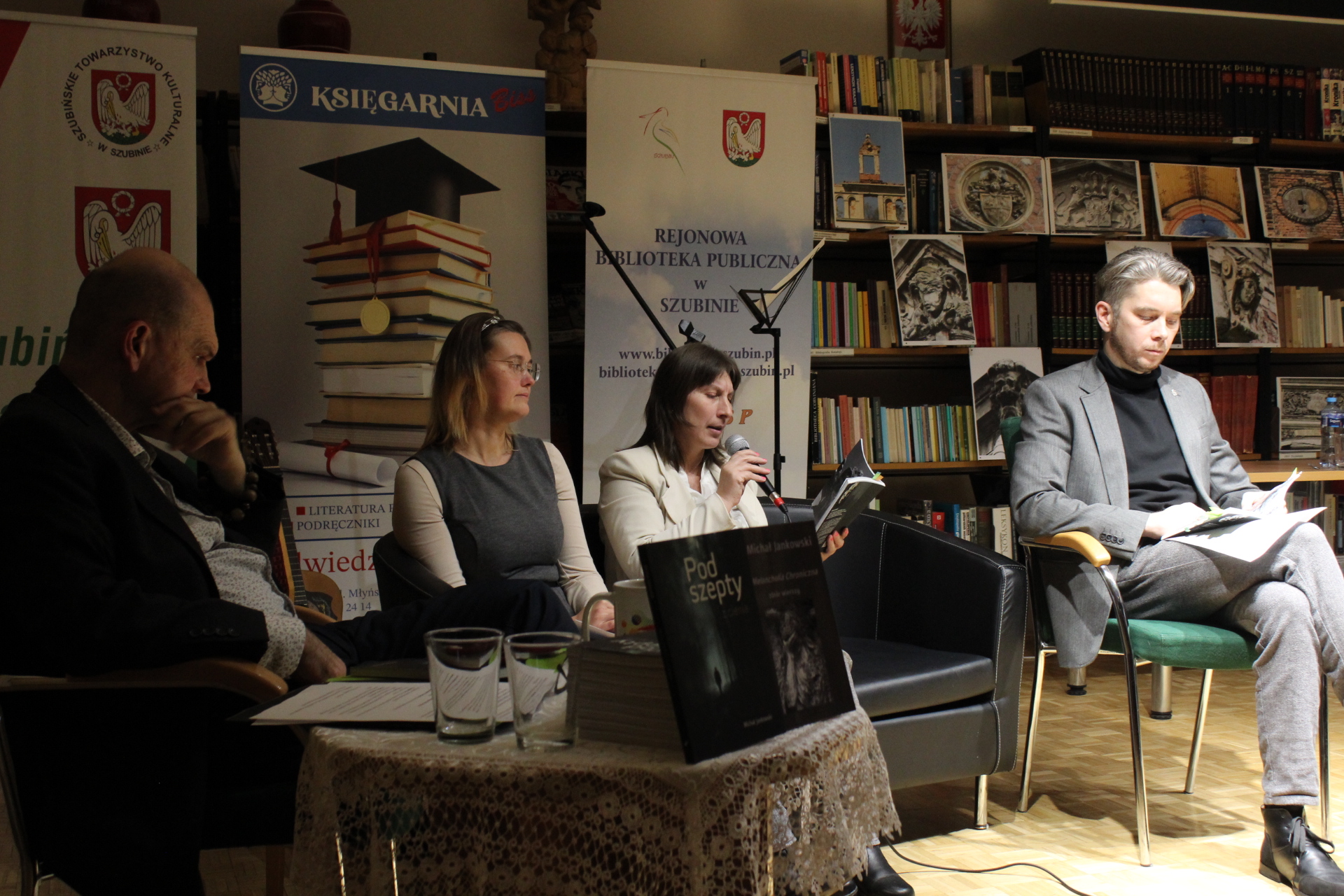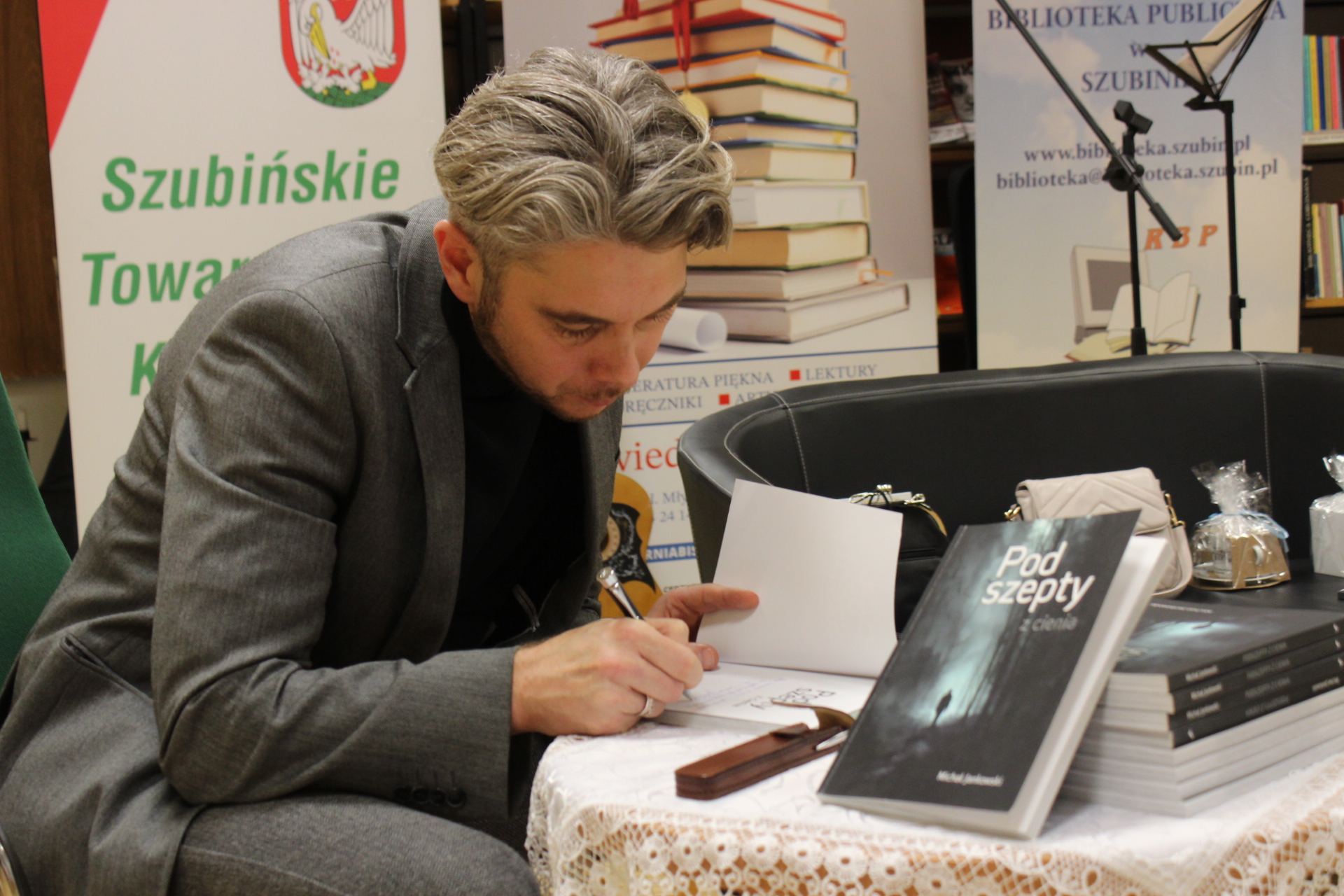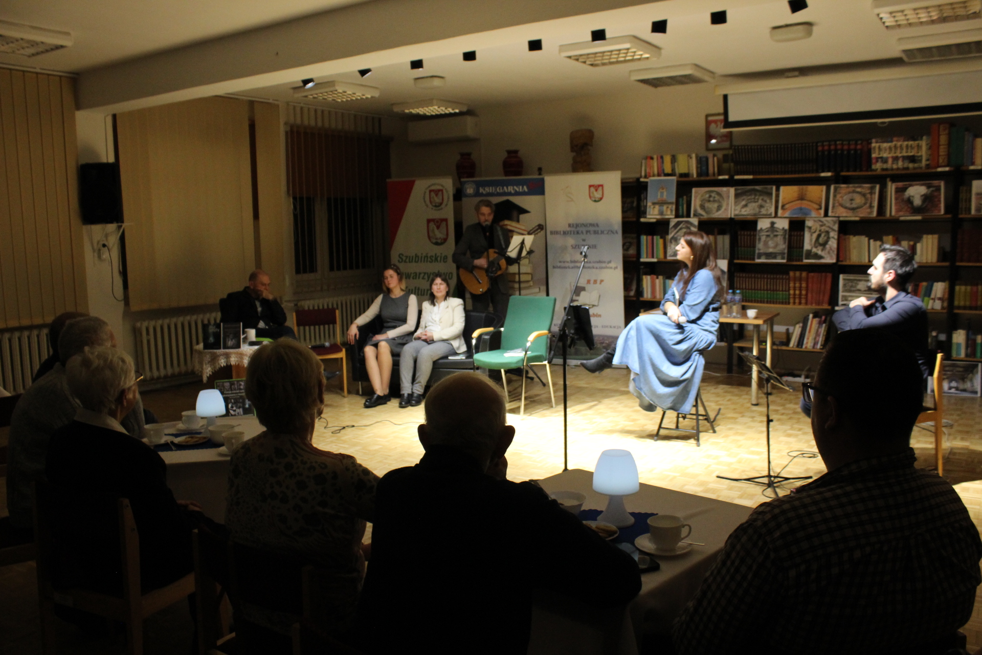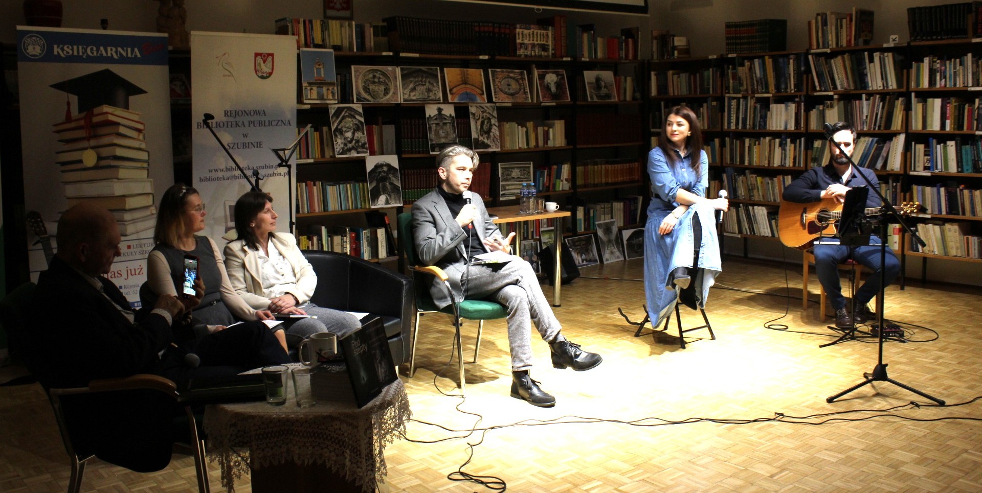 W listopadowy wieczór w szubińskiej bibliotece publicznej splotły się w miłosnym uścisku muzy poezji Kaliope i Euterpe oraz śpiewu, muzyki i przedstawienia scenicznego Melpomeny. W nastrojowym wnętrzu wybrzmiały wiersze poety, dokumentalisty i księgarza Michała Jankowskiego oraz piosenki w wykonaniu Joanny Kalka przy muzyce gitarowej Eryka Redmerskiego. Słuchaliśmy jak urzeczeni lirycznych strof pragnąc by ten wieczór nigdy się nie skończył. W recytacji wierszy wsparły poetę nasze koleżanki także poetki: Małgorzata Szweda-Czerwińska i Małgorzata Olszewska. Widownia dopisała,a bez niej nie ma przecież przedstawienia. Jeszcze raz okazało się, że potrzebujemy kontaktu z poezją, tą mówioną i tą śpiewaną. Kameralny spektakl jaki stworzyli Michał, Joanna, Eryk, Małgorzata i Katarzyna pamiętać będziemy długo. Dziękujemy!